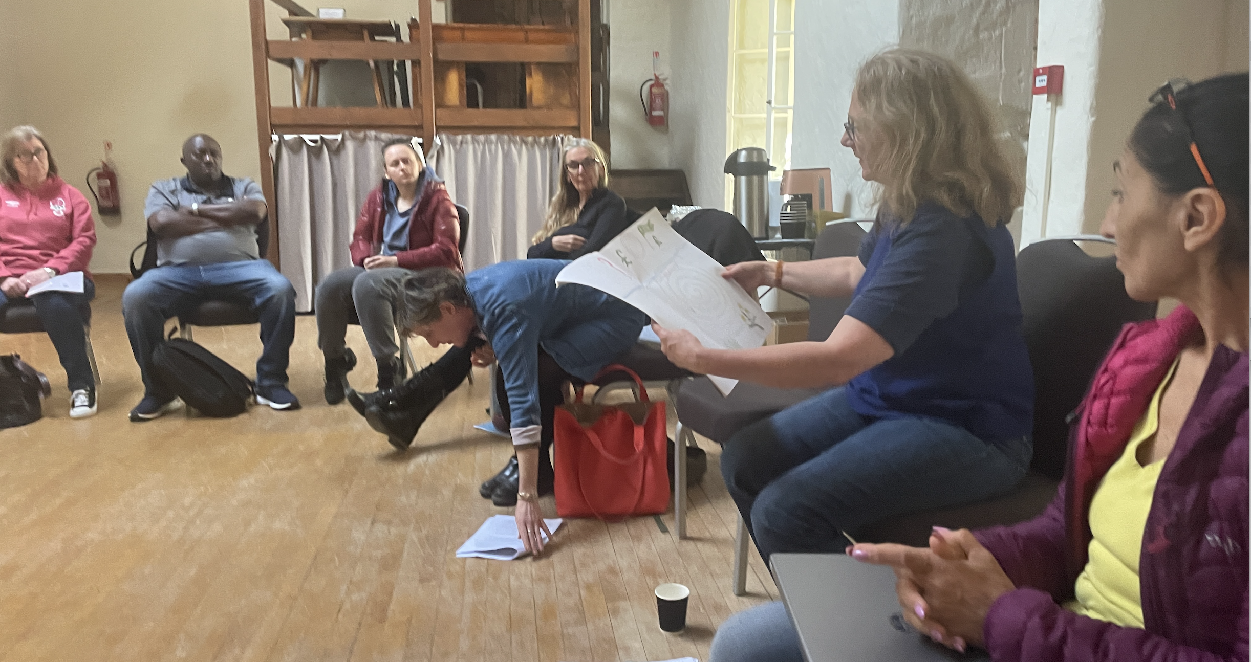 The aim of this annual two day event is to share research in a supportive responsive environment and then engage in creative exploration through sound, writing and embodiment. Set In the grounds of Dartington, the beautiful Ship Studio, (with its high beamed ceilings and wooden floors, sunlight streaming through the windows) is a prefect venue. The combination of this and the provision of tea, coffee and amazing homemade snacks as well as music at the beginning of each day session, (often live from David), created the perfect relaxing space. I love the bold commitment of Kitrina, David and Gayle to the embodied experience: every story matters, every person matters. The use of a circle to face each other, taking time at the beginning of the day to breath and be silent. Taking time to be grateful, Gayle’s fantastic creative writing activities – all of this bought us out of ourselves and got us thinking about our research in new richer ways. I felt as if a cloud lifted and I was free to think. I am grateful that Kitrina, David and Gayle’s networks are wide and draw people in from different walks of life and different places. I learned so much about others’ projects (not just the subject but the process too) from coaching football, how illness and disability disrupts the life course, working in prisons, masculinities, changing blue food systems, film making, time, participatory research in the community, barriers to research, aspects of medical practice and more. I turned up feeling burnt out from a term’s teaching and anxious about news that unis are laying people off and broader global politics, a bit depressed if I’m honest. Today I feel happier, rejuvenated and full of purpose. Thank you so much everyone.